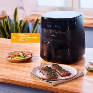 La freidora de Aire ATMA FR246ABP es la opción perfecta para cocinar de manera rápida, saludable y sin complicaciones. Con una capacidad de 6 litros y una potente potencia de 1750W, esta freidora cuenta con 8 programas pre-establecidos que facilitan la preparación de una variedad de recetas. Su ventana transparente termoaislante con luz permite observar el proceso de cocción sin abrir el aparato, mientras que el canasto antiadherente y removible asegura una fácil limpieza. Con un rango de temperatura de 75ºC a 200ºC y un control táctil intuitivo, esta freidora de aire es ideal para quienes buscan comodidad y eficiencia en la cocina. Freidora ATMA con visor 6 litros.